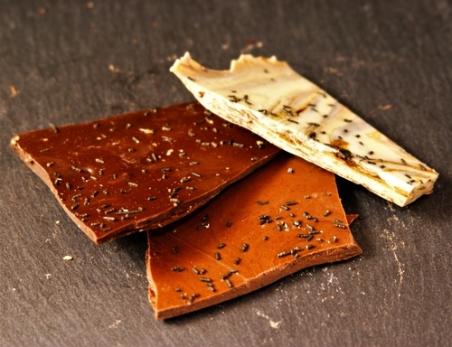 Zutaten: Kuvertüre (Kakaomasse, Zucker, Kakaobutter, Vanille, Sojalecithin), Lakritzpaste (Lakritzextrakt, Glukosesirup, Invertzucker, natürliches Aroma), Lakritzstreusel (Zucker, pflanzliches Fett gehärtet, Glukosesirup, Süßholzextrakt, Farbstoff E 153, Emulgator Sojalecithin, Überzugsmittel Schellack, Aroma), Meersalz; Kakao 60% mindestens